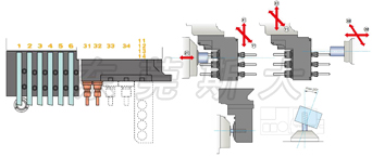 | 四、斯大走心機SB-16RtypeC在標準規格橫向鉆孔單元4軸的基礎上,可配備橫向鉆孔單元5軸型、可交換式橫向鉆孔單元5軸型/5軸高速型4種刀架臺,而可交換式橫向鉆孔單元5軸中的右側3軸,采用模塊化設計配備豐富的刀具單元,可根據工件需要自由安裝多種可交換式工具,展開多樣的復合加工。 |